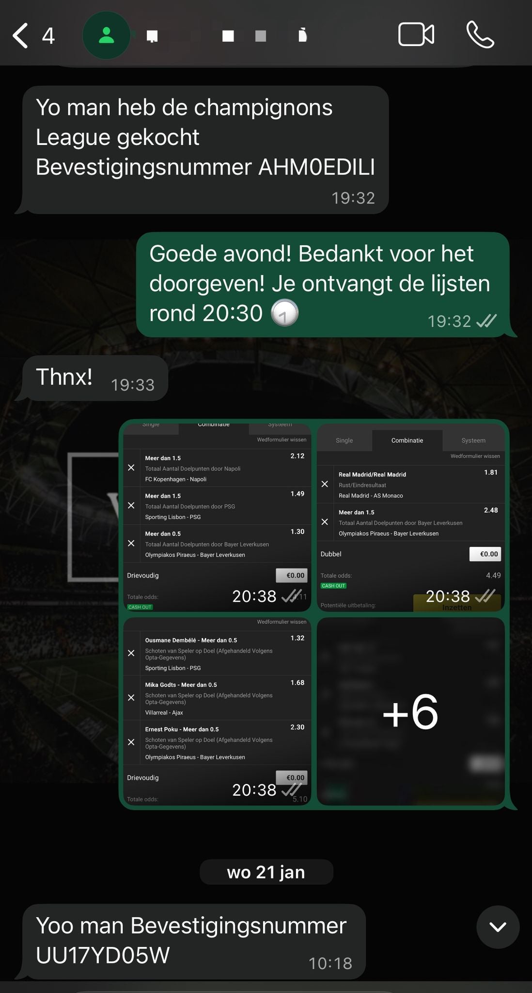 VIP members ontvangen extra picks, prioriteit updates en exclusieve informatie. Alles overzichtelijk geleverd via WhatsApp en de membersomgeving